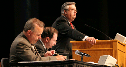International Missions—In order to avert a funding shortfall, International Missions Director James Forlines told delegates that it is time to return to undesignated giving, the standard when the denomination first began sending missionaries.