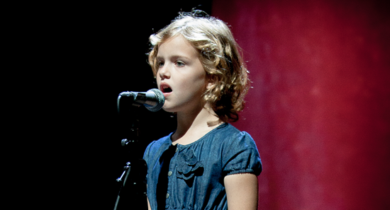 The pure voice of seven-year-old Emmy McGee starts the 2012 D6 Conference with the haunting refrain of the old gospel song, “Nothing But the Blood.” Christian musician Aaron Shust accompanies her before leading worship.