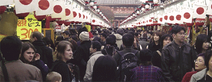 Above: Bethany Crowson walks through a crowded marketplace in Tokyo.