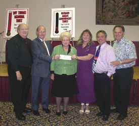 Left: Don and Willene Wilson present a $50,000 check to Richard Adams and Larry Powell.