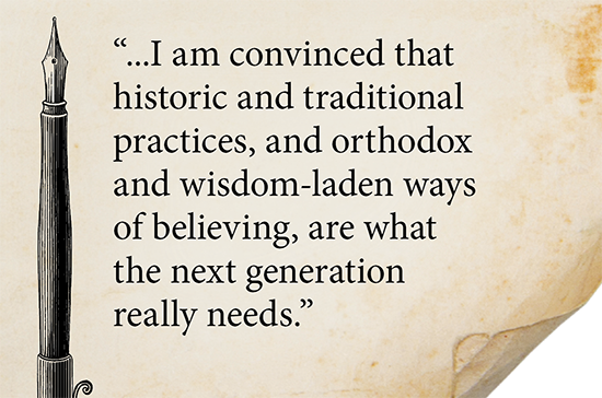 I am convinced that historic and traditional practices, and orthodox and wisdom-laden ways of believing, are what the next generation really needs.”