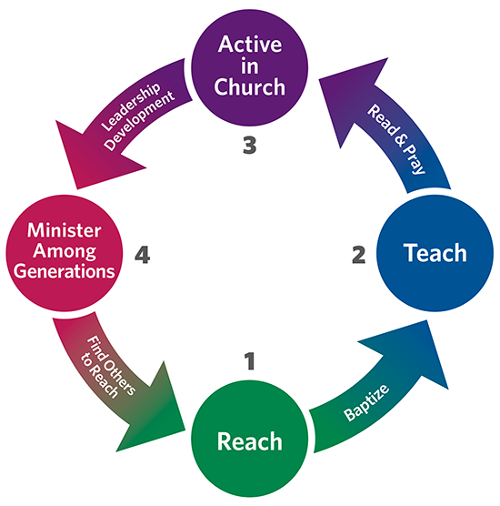 It should not surprise anyone that every step in the circle is biblical, because the Great Commission has always included a reach and teach approach, even though most churches focus on one or the other. When both are emphasized, your congregation will find a sustainable discipleship pattern. When you see a growing church, you will find an emphasis on making disciples who make disciples.