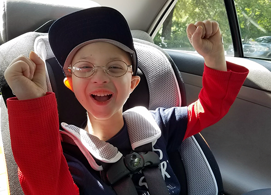 Amanda shares the practical challenges of PD: “Clothes are really tough. At nine years old, Landen wears toddler-sized clothes. On the bright side, skinny jeans fit well. It’s hard to find age appropriate things, and he really likes to get dressed up.”