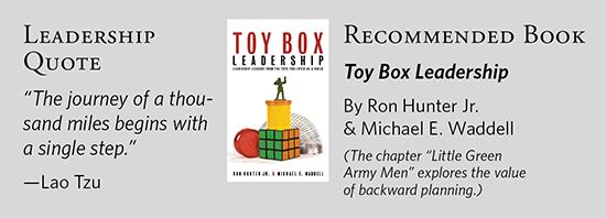 Big goals don’t just happen without preparation and plenty of lead time. Last minute planning looks “last minute.” Backward planning turns big goals into smaller, more manageable tasks.