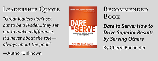 The column "Leadership Whiteboard" provides a short visual leadership coaching moment. It introduces and explains a new sketch in each issue, provides leadership coaching for further development, and shares a leadership quote and recommended book.