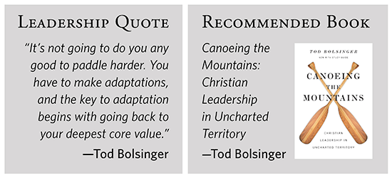 This column was inspired by Tod Bolsinger’s book, Canoeing the Mountains, one of the top five Christian leadership books I have read. As with all books, none of us will agree on everything an author says, but this is a must-read for all pastors.