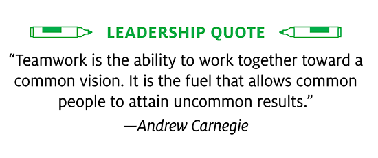 The column "Leadership Whiteboard" provides a short visual leadership coaching moment. It introduces and explains a new sketch in each issue, provides leadership coaching for further development, and shares a leadership quote and recommended book.