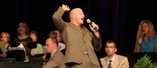 Photo: Todd Horne (GA) hits a high note during the evening worship service.