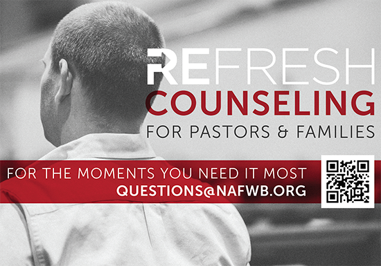 The counseling program currently relies upon eight helping professionals to meet the variety of needs faced by pastors and their families. If you or someone you know would like to participate, email questions@nafwb.org with Counseling in the subject line. You will be contacted for more details. Find additional resources: nafwb.org. |