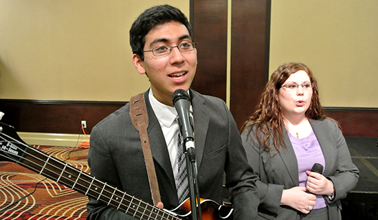Photo: Rejoice Ensemble from Welch College sings for the Tuesday evening worship service.
