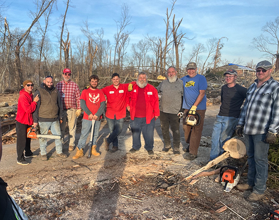 On December 9, 2023, deadly tornadoes developed across Middle Tennessee and Kentucky resulting in multiple fatalities and extensive property damage. Master’s Men Disaster Response Teams (DRT) quickly organized and began assisting with the cleanup effort. Volunteers came from DRTs in Tennessee, Illinois, and South Carolina. The 180 FWB Church in Clarksville, Tennessee, acted as a staging ground for workers and provided a warm place for the community to have access to electricity and supplies.