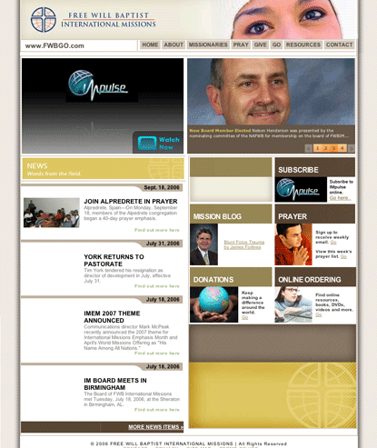 International Missions’ website has recently undergone extensive renovation. “We wanted to furnish a web site that is more user-friendly, provides timely information, makes online donations and ordering resources easier, and increases our use of video and PowerPoint resources,” stated Mark McPeak, communications director of FWBIM.