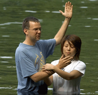 A Sunday morning pancake breakfast was followed by an outdoor worship service. Lake Toya served as a baptismal pool on Sunday afternoon. Mika Sasaki (right), a young career lady, and Fuma Tokiwa (left), a junior high boy who grew up in the church, gave their testimonies. After singing, congregants rejoiced together as the two believers made a bold profession of faith through baptism.