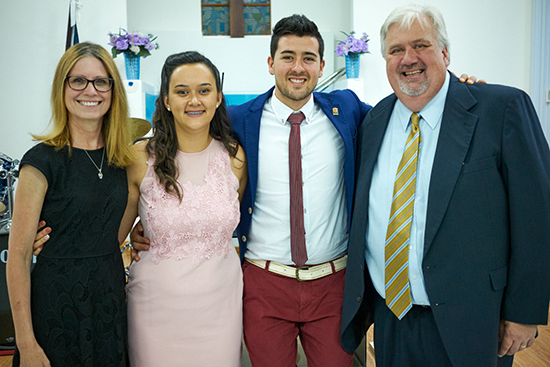Uruguay: Saturday, January 5, Alexander Machado (pictured below, with his wife Magella and missionaries Jaimie and Tammy Lancaster) was ordained as a deacon in the El Canaan (Santa Teresa) FWB Church. Grandson of Pastor Don Casildo Trindade, Alexander was recommended by the church and worked under the observation of the church and presbytery for a year. Alexander and his wife Magella have one daughter.