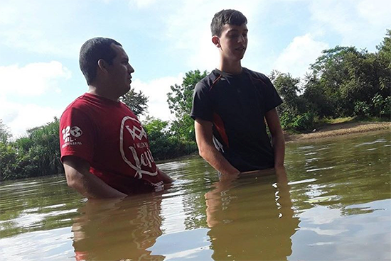 Panama: Pastor Cirilo Mendoza baptized two people (above) on Christmas day at the Good News FWB Church in Chitré.