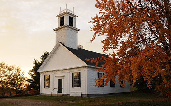 Construction on the Ridge Church began in 1818 and was completed in 1819. Though he died several years before it was built, this is the church started and attended by Benjamin Randall, founder of the northern movement of Free Will Baptists. Over the decades (not to mention centuries), the church has gone through multiple changes. Chimneys were added. A bell tower was built (to house a bell cast in Paul Revere’s forge). At one time, the congregation even turned the church to face another direction. Decorative metal sheets were added to the walls and ceiling and electricity eventually replaced the lamps in the sanctuary chandelier. The structure is listed on the National Registry of Historic Places and is such a vital part of the town history that it appears in the Town Seal.