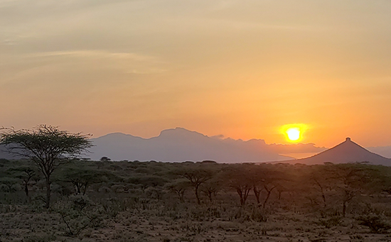The beautiful Samburu sunrise reminds the Samburu team another day of ministry calls to them. Located more than 200 miles northeast of Nairobi, this arid place called Sesia is surrounded by high hills and mountain peaks. The hills seem to form a natural boundary around the land of the Samburu and their wandering herds of goats and camels.