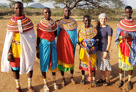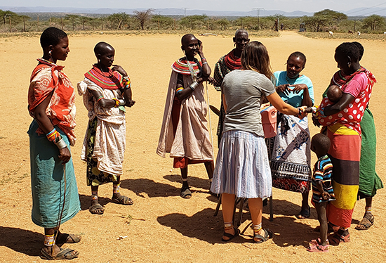 Photo: (top) Author Curt Holland pictured with medical missionary Victoria Little; (middle) Victoria training Samburu women; Victoria with young Samburu warriors.