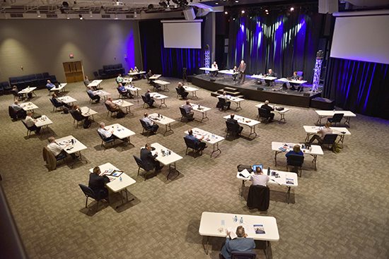 Sporting 30 six-foot tables with a single General Board member seated at each, the 84th session of the National Association of Free Will Baptists, July 20-21, painted a far different picture than the usual one of thousands of people crowded into a convention center or arena. Yet, the COVID-19 pandemic that forced the cancelation of an in-person convention didn’t prevent those thousands from coming together for online worship, business, training, and even fellowship from a distance.