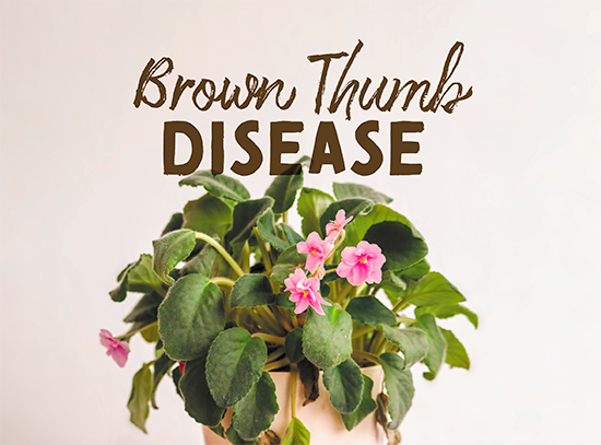 I have Brown Thumb Disease. I don’t just lack skill at growing houseplants; I kill them. As one acquaintance said, I’m a houseplant assassin. First, it was African violets. I was a 30-something-year-old with the duties of a pastor’s wife, three young sons, college classes in English with reams of reading and writing, Sunday School teacher, church pianist, leader of a small women’s singing group, and Ruby’s neighbor, a woman with African violets running out of her ears.