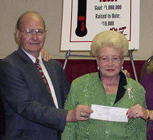 Left: Don and Willene Wilson present a $50,000 check to Richard Adams and Larry Powell.