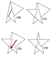 Usually, glue and tape aren’t used in origami . . . but you might want to put a few dots of glue here and there (or tape) if you want to display your star (13).