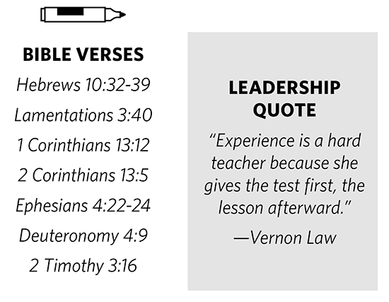 We have all heard those consoling words: “experience is the best teacher.” I suspect many of you are quickly quoting John Maxwell’s retort: “Experience is not the best teacher, evaluated experience is.”