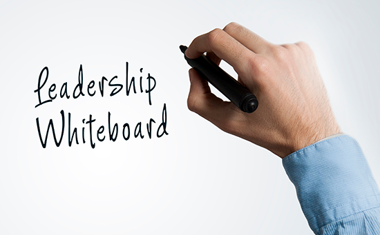 The column "Leadership Whiteboard" provides a short visual leadership coaching moment. It introduces and explains a new sketch in each issue, provides leadership coaching for further development, and shares a leadership quote and recommended book.