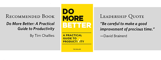 I realize not all tasks are equal, but a person skilled in time management can juggle more. If you are the boss, pastor, or supervisor, your responsibility for multiple people and programs requires a proficiency in time management. The benefits include less stress, more free time (or capacity to do more), and more tasks accomplished. Allow me to share two time management helps: