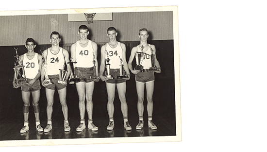 During basketball season, each week began for the players with a three-hour practice Monday night. We would run 40 laps on the gymnasium bleachers, followed by push-ups, position shooting, and wind sprints. Larry often ran beside me. His shoes were ragged from hard use. The pace never slowed. Game nights were typically Tuesday and Thursday, and weekend tournaments usually included three or more games. When the team played “away” games, we usually rode in cars or on a school bus, arriving back at Forest between nine and eleven o’clock.