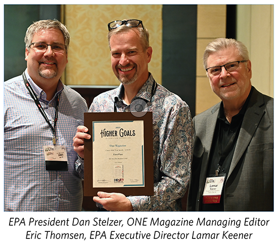 “While we don’t write and design for awards or recognition, it is always encouraging to see the hard work of writers, editors, proofers, and designers validated by the greater Christian community,” ONE Magazine Managing Editor Eric Thomsen noted. “We are honored to receive these awards and inspired to continue the level of publishing excellence that prompted them.”