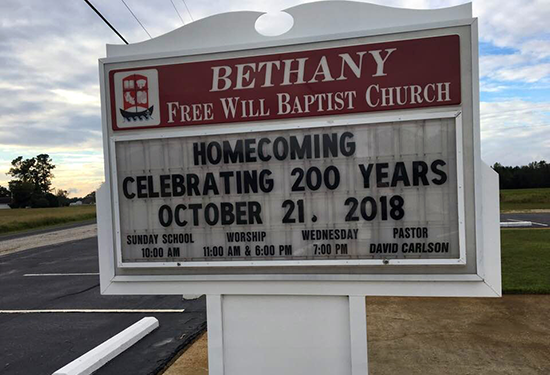 Timmonsville, SC—Bethany FWB Church celebrated its 200th anniversary (1818-2018), October 20-21. A Saturday evening service featured former pastors Galen Dunbar, Earl Hanna, Al Davis, and Elro Driggers. The church opened a time capsule with notes written by young people 35 years earlier when then educational wing was built.