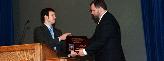The 2007 senior class at Free Will Baptist Bible College presented a plaque to President Matt Pinson during Bible Conference honoring former student body president Gerald Turner who died in November 2006.