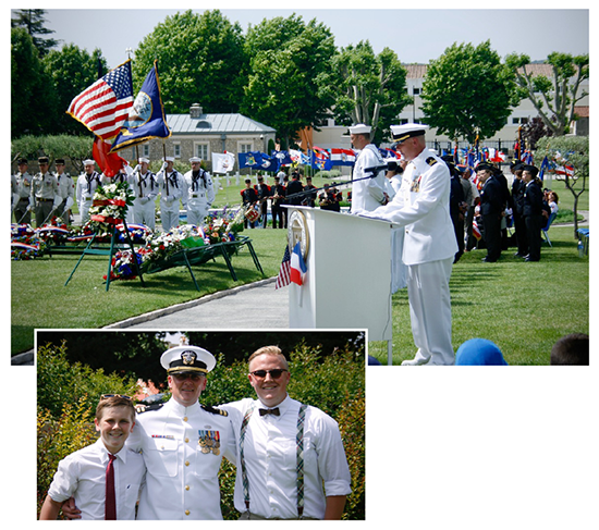 LT Mark McCraney, CH, USN (below with his sons), offered prayers at the Rhone American Cemetery in Draguignan, France, for a Memorial Day observance on May 28, 2018.