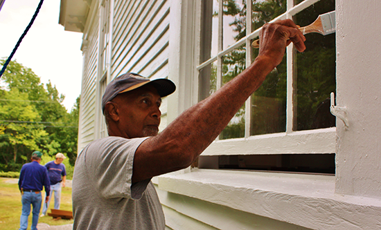 After months of planning and fund raising, a group of volunteers from Arkansas, Illinois, Ohio, and Tennessee spent two weeks working on the roof. Inside, the structures were reinforced, and outside the existing shingles were removed and replaced. Over the next several years, volunteers removed the old, flaking paint and repainted both interior and exterior, including the pews.