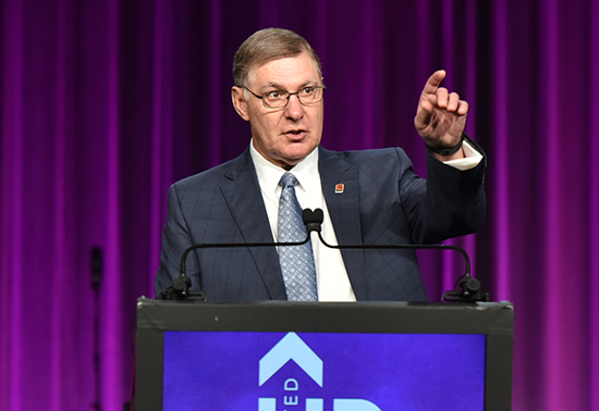 Photo: Keith Burden addresses delegates during his final national convention as executive secretary.