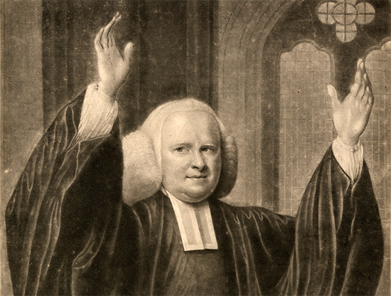 Whitefield often preached in the open air. A Connecticut farmer told of joining “a steady stream of horses and their riders,” hurrying to hear the evangelist. The combined hoofbeats, he said, sounded like “low rumbling thunder” and stirred up dust thick as fog. Newspapers reported Whitefield sometimes preached to thirty thousand. Not believing a voice could carry that far, Benjamin Franklin attended a sermon, did some calculations, and quickly changed his mind.