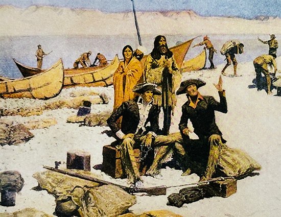 Shoshone-born Sacagawea and her newborn son Jean Baptiste (“Pomp”) were aboard, along with her husband Toussaint Charbonneau, a Frenchman whom the captains described as a “squaw man” and “ne’er-do-well,” but a much-needed interpreter.